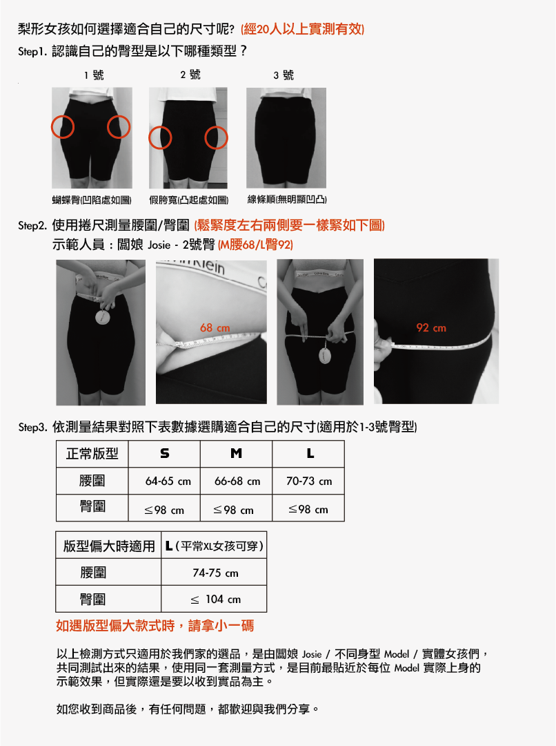 版型 : 正常 (闆娘 Josie M腰68& L臀92--穿M剛好)